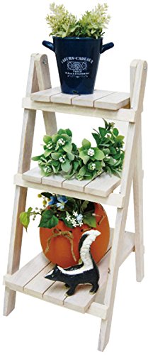 丸和貿易 フラワースタンド ラバーウッド 3段シェルフ ホワイト 100367801