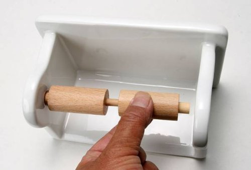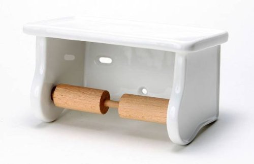 磁器製のブランカペーパーホルダーです。 SIZE W180×D110×H110mm 取替え前のネジ穴をそのまま活かせるよう取付ネジ部分の幅が広くなっています。 木製の芯棒にはスプリングが内蔵されているので、芯棒を左右どちらかに押し込んでトイレットペーパーを交換するタイプです。 ネジは付属されておりません