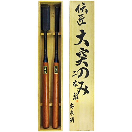 伝匠 大突のみ 安来鋼 桐箱入 2本組 24mm・48mm