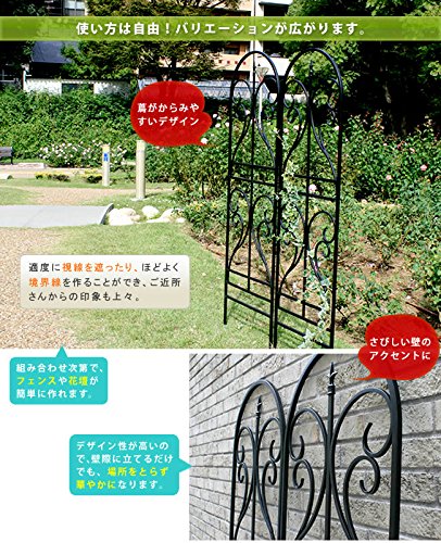 【アイアントレリス フィニアル 4枚組】 ■地面に刺すだけカンタン!高級感あふれるマットブラック。■ 丸みのあるデザインが、高貴な愛らしさを感じさせるクラシカルなフェンスです。 漆黒の美しさが際立つアイアン素材なら、お庭の開放感を維持できるうえに、木製のものより経年劣化が少ないのもポイント。 家の中から外を見た時に圧迫感がなく、軽やかで使いやすいと評判です。 地面に挿し込むだけなので、どんな角度でも連結が可能。 玄関アプローチのカーブに沿っての設置もできます。