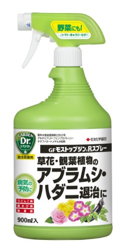 ●草花・観葉植物におすすめ。 ●害虫には接触及び持続効果、病気には予防と治療効果があります。 ●ハダニ退治に効果的です。 ■使用上の注意■ 【効果・薬害等の注意】 ●使用前に容器をよく振ってください(沈殿)。 ●そのまま散布できるよう調製してありますので、希釈せず散布してください。 ●まきむらのないように均一に散布してください。 ●きゅうりでは、幼苗、軟弱徒長苗など、及び高温・多湿時には葉縁に薬害を生じるおそれがありますので注意してください。 ●重複散布や多量散布は薬害を生ずるおそれがありますので注意してください。 ●連続使用によって薬剤耐性菌が出現し効果の劣った事例がありますので、過度の連用はさけ、なるべく作用性の異なる他の薬剤と組み合わせて輪番で使用してください。 ●適用作物群に属する作物又はその新品種に本剤をはじめて使用する場合は、使用者の責任において事前に薬害の有無を十分に確認してから使用してください。なお、病害虫防除所または販売店等と相談することが望ましいです。 【安全使用上の注意】 ●体調のすぐれない時は散布しないでください。 ●人に向かって噴射しないでください。 ●かぶれやすい人は取扱に十分注意してください。 ●散布時は、農薬用マスク、手袋、長ズボン・長袖の作業衣などを着用してください。作業後は直ちに手足、顔などを石けんでよく洗い、うがいをしてください。 ●本剤は、のど、鼻、皮ふなどを刺激する場合、また、かゆみを生じる場合がありますので注意してください。 ●風向きなどを考え周辺の人家、自動車、壁、洗濯物、ペット、玩具などに散布液がかからないように注意してください。 ●蚕に影響がありますので、注意して使用してください。 ●ミツバチの巣箱及びその周辺にかからないようにしてください。また、養蜂地区では周辺への飛散に注意し危害防止に努めてください。 ●使用後の空容器は3回以上洗浄してから処理してください。 治療法:アセタミプリドには、L-メチオニン製剤、グリチルリチン製剤及びグルタチオン製剤の注射投与が、フェンプロパトリンには、メトカルバモール製剤の投与が有効です(動物実験で報告)。