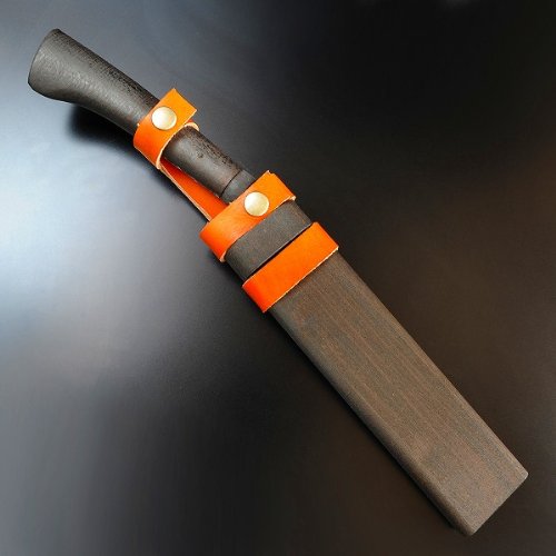 - 付属の鞘は木製で、スナップボタンを留める事でしっかりと固定して持ち運ぶ際にナタの飛び出しを防止してくれます。
