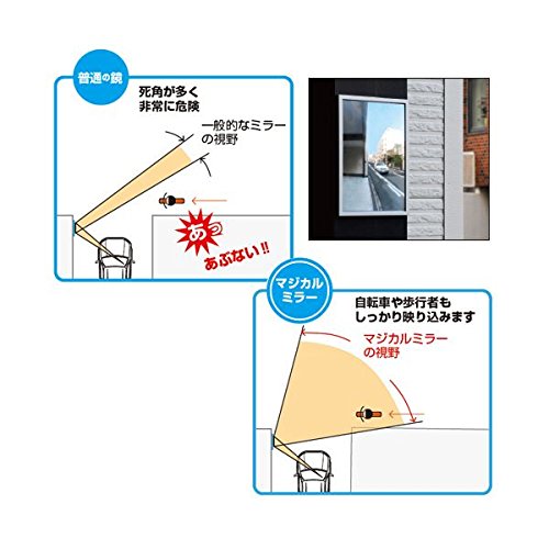 ●外観とフィットするオシャレでワイドなミラー。フラット(平面)なのに見える範囲が広いカーブミラーです?広角平面タイプで出幅は約10mm?粘着テープ・ビス止めの両方の取り付けができる?道路にはみ出ず、簡単に取り付けができる?有効視野がワイド(従来の凸ミラーより鮮明度は劣ります)