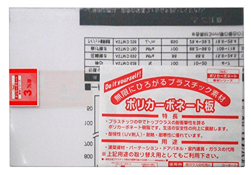 ●【用途】建築建材・パテーション・ドアパネル・室内建具・ガラスの代用・カーポート。【機能・特徴】プラスチックの中でトップクラスの耐衝撃性を誇るポリカーボネイト樹脂です。UV剤入りで紫外線をカットします。耐候性・耐熱・耐寒性に優れています。