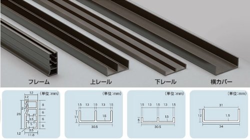 - フレーム(障子4方框)L=1840mmx6本、上レール1830mm、下レール1830mm各1本、横カバー(竪枠用)1830mmx2本 同梱