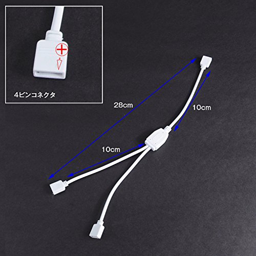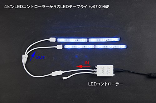 - LEDテープライトの配線分岐に利用できます。 分岐はIN側とOUT側が4PINコネクタ、4線、DCジャック1-2分岐ケーブルです。 各分岐ケーブル長さはIN側、2分岐OUT側全て30cmです。