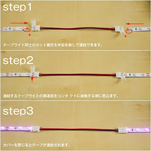 テープライト同士のカット箇所を半田を無しで連結できます。