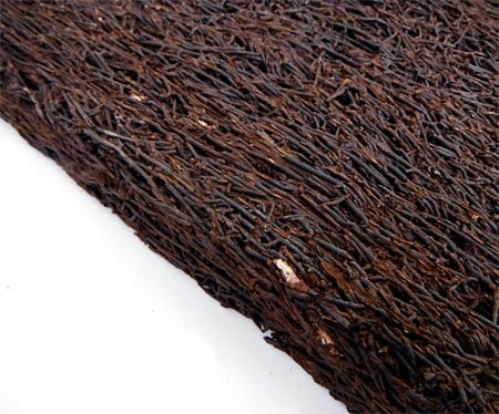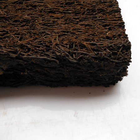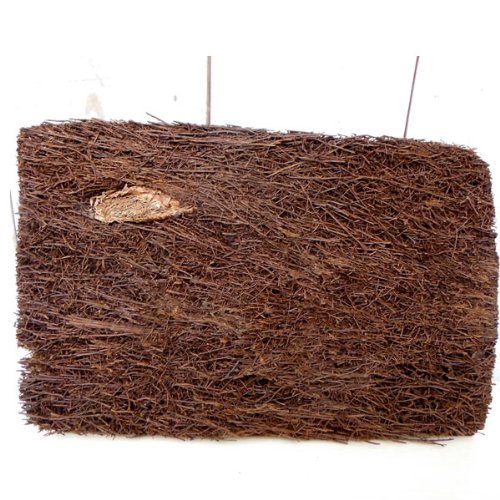 観葉植物の仕立てに使われるヘゴ板。使いやすいように平らに加工したものです。ヘゴ板はヘゴ科の木生シダの気根が集まった幹の加工品です。水はけが良く、かつ保水性があり、耐久性も高い資材です。着生ランやシダ類、ポトスなどの着生植物の栽培に適しています。また、両生類の飼育容器の床材・壁材としても使われます。