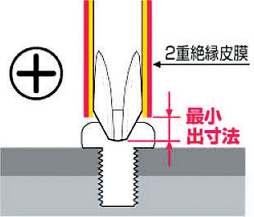 - 注意:本製品は耐電圧1000Vの絶縁ドライバーです。絶縁皮膜自体は10000Vの絶縁性能がありますが、耐久性を考慮して最大電圧1000Vを守ってください。