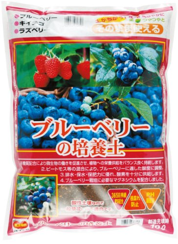 - 適用植物: ブルーベリー(ラビットアイ系・ハイブッシュ系) ・注意 土壌酸度がpH4.5前後の酸性土壌のため、一般草花の栽培には適さない。