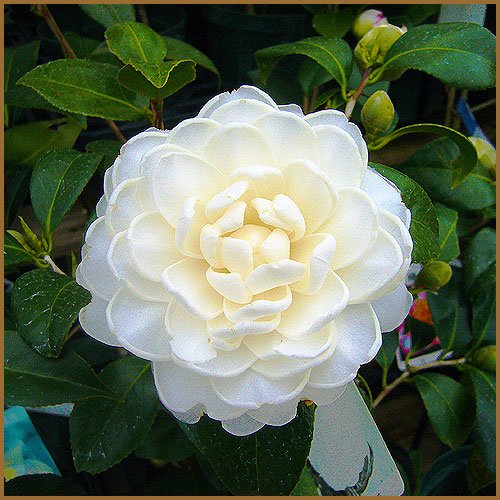 - 椿(ツバキ)「さつま」の苗木を販売しています。純白の千重咲きのツバキです。 さつまは、名前のとおり鹿児島県産の椿(ツバキ)です。椿には見えない菊のような千重咲きと純白の花色が人気の椿です。