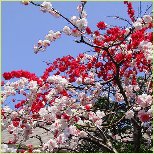 - 花桃(ハナモモ)苗木のサイズ: 約40~50cm(樹高や樹形は、季節や入荷時期により異なります) 開花時期: 3~4月 最大樹高: 1. 5~3m 花色: 白、赤、紅白の咲き分け /花形: 八重咲き 備考: 1年生の苗木です。