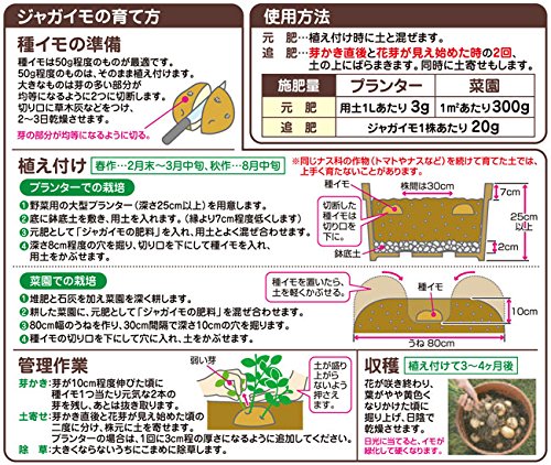 - じゃがいも(ジャガイモ)「男爵薯(だんしゃくいも)の種芋」: 約2kg ●タネイモの大きさは年により異なります。そのため、量り売り(kg)のタネイモは大きさにより、入り数(個数)も変動します。また、品種によっても入り数は変わります。大きさはお選びいただけませんのでご了承ください。 ※記載のグラム数は袋詰め時点でのものです。お届け時には乾燥などにより、やや少なくなっている場合があります。