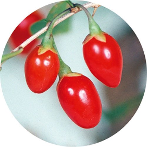 - 昔ながらの健康果樹(薬膳他)です。夏に紫色の花が咲き、秋には赤い実が鈴なりになります。クコの実は、昔から粥、茶、酒などの薬膳や、漢方、民間薬として知られており、近年では果実酒や生食、ドライフルーツに利用されています。その効能から特に女性に人気がある隠れた健康果樹です。