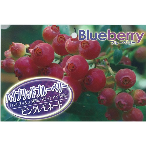 - 人気急上昇中の最新品種。ブルーベリー「ピンクレモネード」は、ハイブッシュ系とラビットアイ系のハイブリッド品種で、非常に珍しいピンク色ブルーベリーです。そして果実は甘く、果皮はやや硬めの心地よい食感があります。自家結実性もありますがラビットアイ系を一緒に植えたほうがいいです。