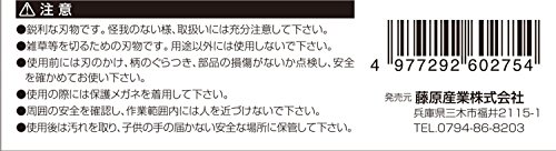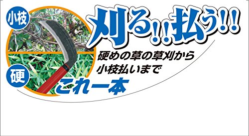 ●【用途】草刈り、小枝払い用。【機能・特徴】硬い草から小枝まで、これ一丁です。笹・ヨシ・ススキなどから5mm程度の小枝までにこれ1本で刈ることが出来ます。柄は畑や草の中で目立ちやすい赤塗装を施しています。