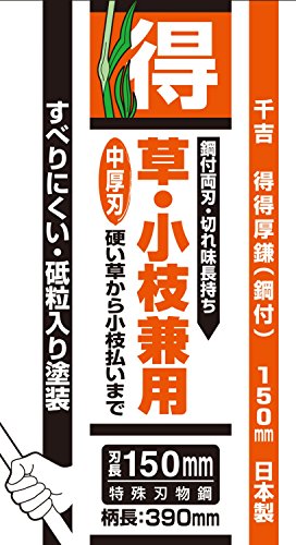 千吉 得得厚鎌 鋼付 硬い草・小枝払い用 150mm