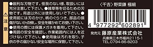 ●【商品説明】●「千吉 野菜鎌 極細刃 105mm」は、抜群の切れ味でキャベツなどの収穫に最適です。●高硬度ステンを仕様しているので、切れ味抜群で永切れします。●刃幅が細い為、細かい場所の作業に適しています。●【お問い合わせ先】●藤原産業(株)0794-86-8200●【原産国】●日本●【製品仕様】●全長:290mm●重量:70g●刃部:ステンレス(1k-6)●柄:木●【ご注意】●本来の用途以外には使用しないで下さい。●使用前には本体あるいは部品にがたつき・緩みが無いことを確認してください。●使用の際には保護めがね・手袋などを着用してください。●使用後は汚れを取り、子供の手の届かない安全な場所に保管してください。●【用途】●作物の収穫作業。●まとめ買いの場合、システムの仕様で個数分の送料が加算される場合がありますが、送料は1配送先につき1個分の金額となります。●システムの仕様で配達日を指定出来る場合がありますが、配達日の指定は出来ませんのでご了承ください。尚、時間指定は出来ます。●ご注文確定後のキャンセルならびに、お届けしました商品のお客様都...