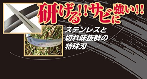 ●【用途】草刈り鎌。●【機能・特長】除草作業用です。ステンレス鎌でありながら、鋼を割り込む事で通常の鋼付鎌の様に研磨しながら使うことのできる鎌です。ステンレスと鋼の3層構造の為、サビに強いだけでなく、切れ味も申し分ありません。ダイヤモンドシャープナーや砥石で簡単に研磨可能です。●刃部:ステンレス。【注意事項】改良の為、仕様及び形状、パッケージデザイン等は変更する場合がございますので、ご了承ください。