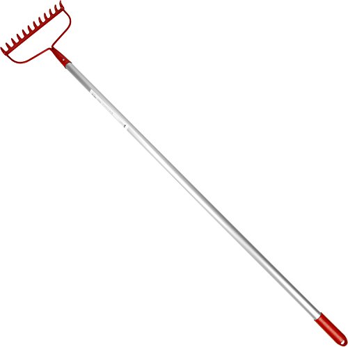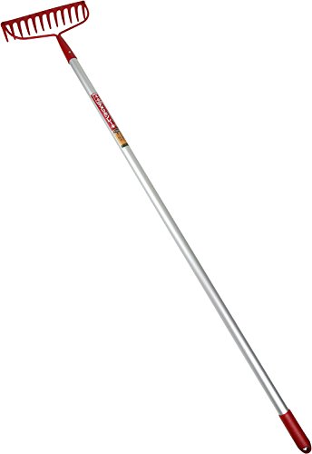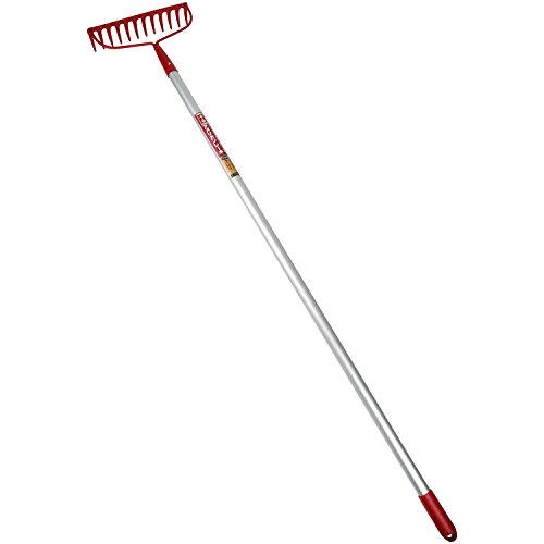 ●【用途】集草、清掃作業。●【機能・特長】丈夫で、曲がりにくい、刃先焼入れ処理がされています。曲がり防止のリブ加工がされています。アルミ柄で火に強いです。●頭:S45C。●柄:アルミ。