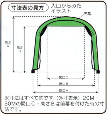 - [サイズ]間口A:2.70m(横幅の一番広いところ)/間口B:2.52m(開口最下部の横幅)/開口C:1.52m(開口最上部、狭い部分の横幅)