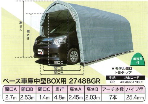 【日・祝日着不可・時間指定不可】 南栄工業 パイプ車庫 2748BGR ベース車庫 中型BOX用 代不