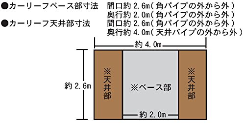 - [仕様] シート:クロス生地(表:ブラウン/裏:シルバー) / シート耐久年数:約2~3年 / サイズ:(幅)2.5×(奥行)4.0×(高さ)2.3m / 重量:73.2kg