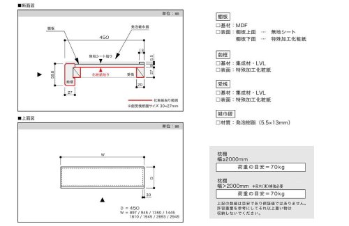 - 枕棚セット 框・棚板分離型