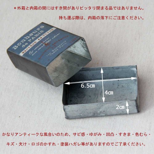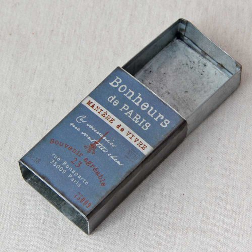 使い古したようなアンティーク感がお洒落なブリキのマッチボックスです。ロゴを見えるように立てて飾っても…ちょこっと小物入れとしても…お洒落なディスプレイを楽しめそうですね。