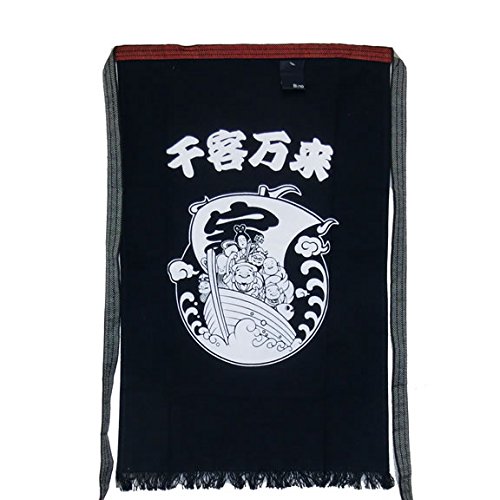 昔ながらの前掛け。酒屋さんやお米屋さんでよく見たタイプ。縁起物の「七福神」をプリントした帆前掛け。品質:綿100% 中国製。※投函便の場合、代引き決済ご利用できません。