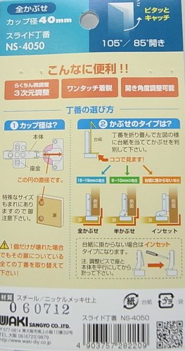 WAKI スライド丁番 キャッチ付 40mm 全かぶせ