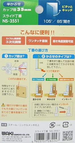 WAKI スライド丁番 キャッチ付 35mm 半かぶせ
