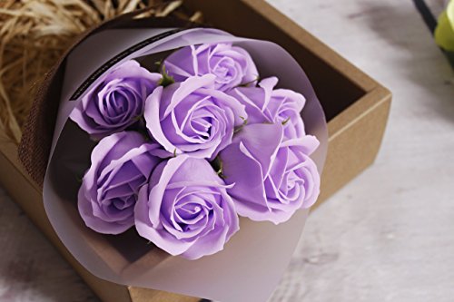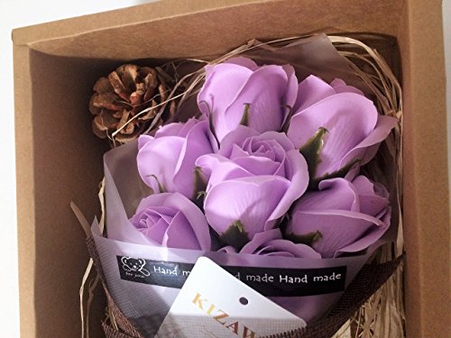 KIZAWA 枯れない花 ソープ フラワー プレゼント ギフト 大切な人 へ 感謝 の 気持ち を 伝える 花束 ( 敬老の日 母の日 バレンタイン ホワイトデー 入学 卒業 誕生日 結婚記念日 七夕 など 様々な お祝い の シーン に 最適 )(7本, ライトパープル)