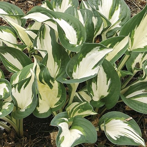 - Hosta 'Paul Revere' 草丈45cm、濃緑に鮮やかな白中斑の中型品種。