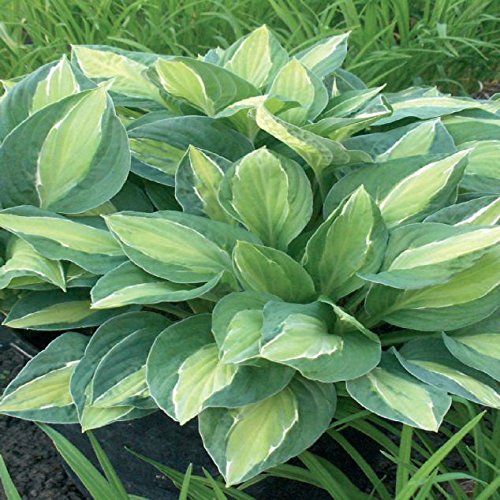 - Hosta 'Gypsy Rose' 草丈35cm、三光覆輪といわれるタイプの斑入りで緑、黄色、白の組み合わせが美しい。