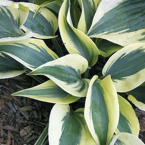 - Hosta 'Firn' 草丈50cm、青地に幅広のクリーム覆輪が美しい中型品種。