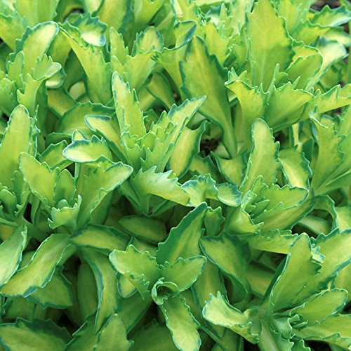 - Sedum Beka Autumn Delight ? 草丈35cm、ライムグリーンの葉で縁取りが濃緑の斑入り品種。花は淡いピンク色。