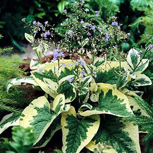 - Brunnera macrophylla 'Hadspen Cream' 草丈30cm、クリーム色の覆輪斑品種で花は青色。