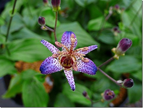 - 青紫色の花弁に赤紫色の斑点が美しい。