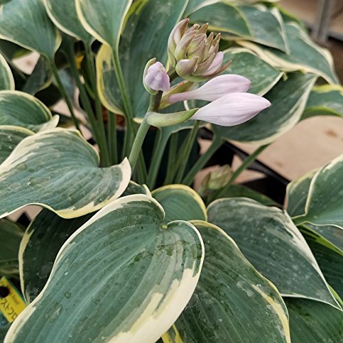 - Hosta 'First Frost' 草丈45cm、ブルーシルバーの葉に黄色の覆輪斑が映える人気品種。