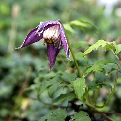 - 藤色の萼に白い花弁が特徴の可憐なつる性植物。