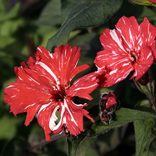 - 赤い花に白絞りの絞り咲き選抜品種。赤と白のコントラストが映える。