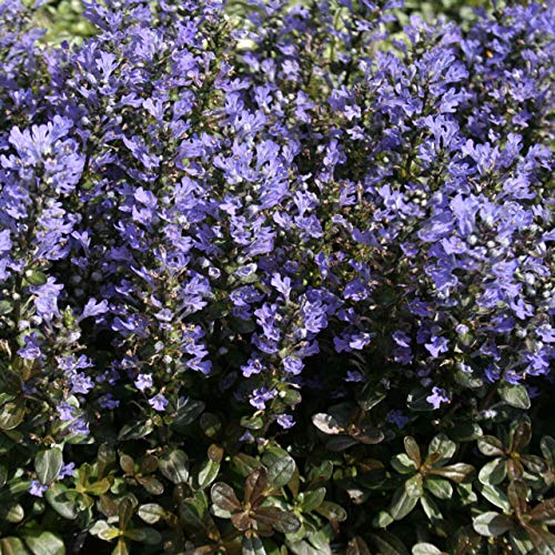 チョコレート色の葉と青紫色の可憐な花が特徴のグランドカバー植物。
