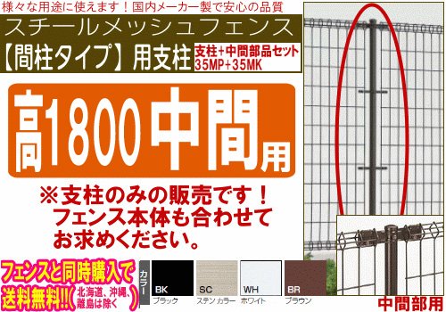 メッシュフェンス【間柱タイプ】コーナ用支柱(支柱+コーナ部品セット)高1800対応 (ホワイト) (ブラック ) (ホワイト)