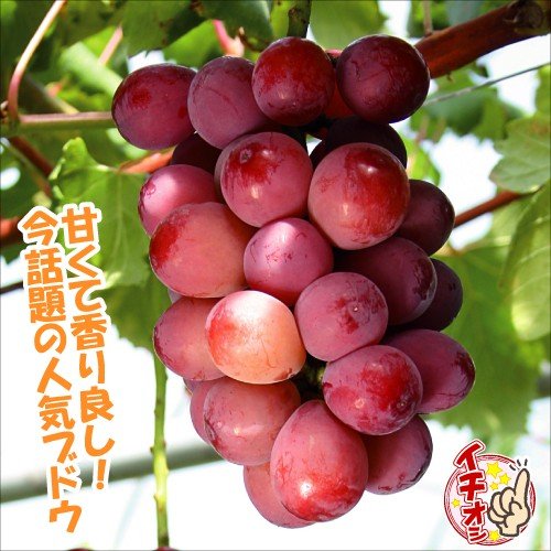 栽培し収穫を経験した農家さん達が「大粒で甘く、着色良い赤ブドウだ!」と大絶賛!栽培面積を増やそうとする動きから、苗木の引き合いが増えているとか。「巨峰」「ピオーネ」より若干収穫が遅いことと、より高糖度・低酸の美味しい大粒果であること、何より着色の良い赤ブドウだと再評価されています。試食会では「甘すぎてひと房は食べきれない」と言わしめたほどの甘さ(平均糖度21度)。果肉の締り良く、噛むほどに溢れる果汁とフォクシー香があわさり、贅沢極まりない味わいです。果粒重約17gと「巨峰」「ピオーネ」よりも大粒になる優秀品種。
