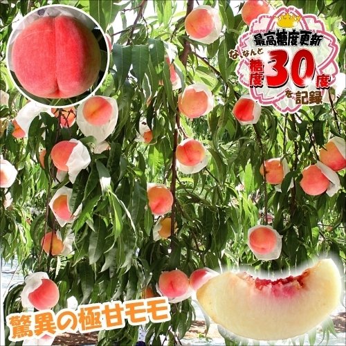 なんと、前代未聞の糖度約23度にもなる驚異の極甘モモ! 長野県安曇野では、糖度30度とモモではありえないような数値を記録したそうです。生産者の試食会でも「甘すぎる!」と大絶賛の逸材です。果肉は良く締まり繊維少なく、