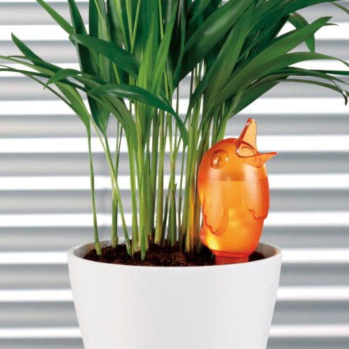 - <シューリッヒ:バーディ> 鉢花や観葉植物の土にさして自動給水するカワイイ給水器。4日間水やりなし!いつもの水やりの手間が軽減できます。鉢物の土にさして、バーディ(小鳥)の口から本体に約90ミリリットルの水を入れます。鉢土に差し込んだ下部の焼き物の突起部からゆっくりと土に水分が供給されます。本体が透明なので水の減り具合も一目でわかり、水の補給のタイミングを逃しません。デザイン・色合いも可愛く、アクセサリーとしてもステキです。 サイズ:高さ15cm ご利用方法: 本体下部の給水筒部分をしっかりと鉢土にさし、本体をまっすぐ立てて水差しなどで水を入れてご利用ください。植物の根が必要とする分だけ、給水筒から水がしみだします。上部の重みで倒れないように、給水筒の根元までしっかりと土にさしてください。 ご注意: 鉢や植物の大きさやご使用環境等により、1日当たりの水の減る量が異なります。旅行などで長期留守にされる場合は、必ず事前にお試しいただき、水が減るスピードなどをご確認の上ご利用ください。