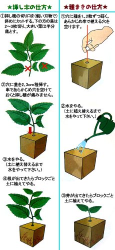 - 種まきの場合 1.穴に種を1~2粒ずつ蒔きます。 2.水をやります。(土に植え替えるまで水をやってください) 3.芽が出てきたらブロックごと土に移植します。 写真は使用例です