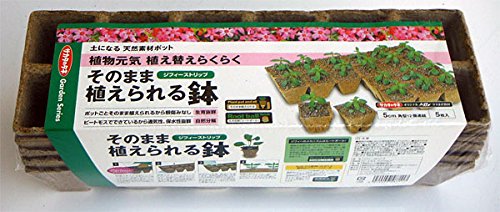 - ピートモスを主原料とした育苗ポットです。5cm角のポットが12個連結された状態になっています。12個連結シートが5枚入っていますので、1パッケージで合計60本、2パッケージで120本の苗を育てることができます。種まき用の培養土を入れ、種をまいて苗を育ててください。通気性、保水性に優れ、植物の生育を促進します。自然に土に返る素材なので、苗が育ったらポットのまま1個ずつに切り離し、ポットから苗を抜かずにそのまま植付けできます。植え替えによる根の植え傷みがありません。ジフィーの各製品について、詳しくは種まきかんたん!ジフィーシリーズ(Amazonでは'種まきかんたん!ジフィーシリーズ'へのリンクは掲載されません)をご覧ください。