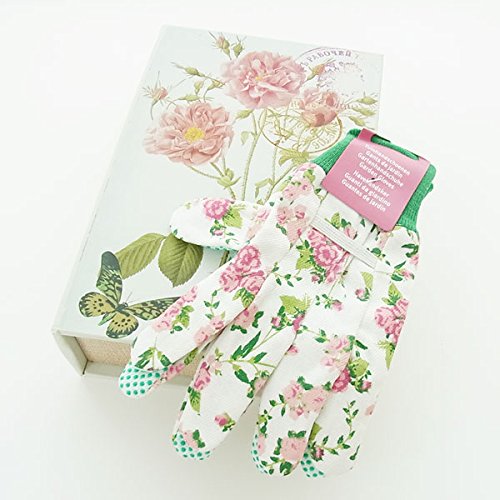 - バラをあしたらデザインのガーデングローブとブックボックスのセットです。 セット内容: Fallen Fruits:ローズコレクション ガーデングローブ RD10 × 1双 ブック型ボックス2L × 1個